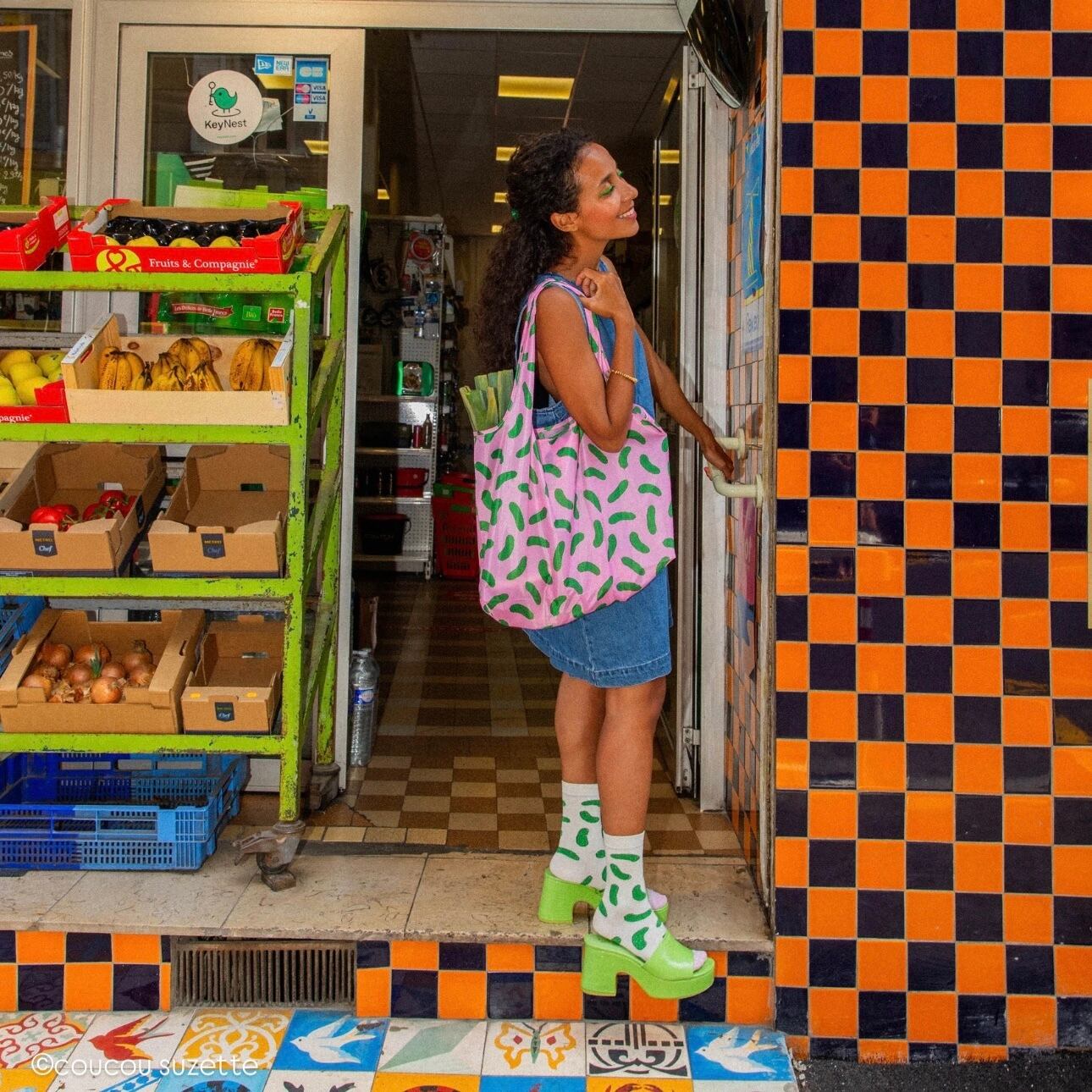 The exciting new arrival we’ll never leave home without: the Coucou Suzette shopping tote! A super lightweight, endlessly reusable bag that folds up to fit perfectly in your fanny pack—ready to tag along on all your daily adventures. We love its sturdy fabric made from recycled materials, tough enough to carry all your treasures and perfect for picnics or beach days. And of course, it’s topped off with a delightful pickle print!