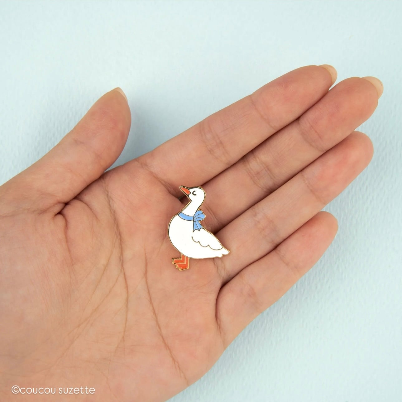 田舎に引っ越してきたお友達や、農場の動物が大好きな小さなお子さんへのプレゼントに最適です! この愛らしいガチョウのエナメルピンは、清楚な羽毛と甘いブルーのリボンが特徴です。 ジャケットやトートバッグなど、あらゆるものにとまりそうな、誇らしげな小さな顔が素敵です。