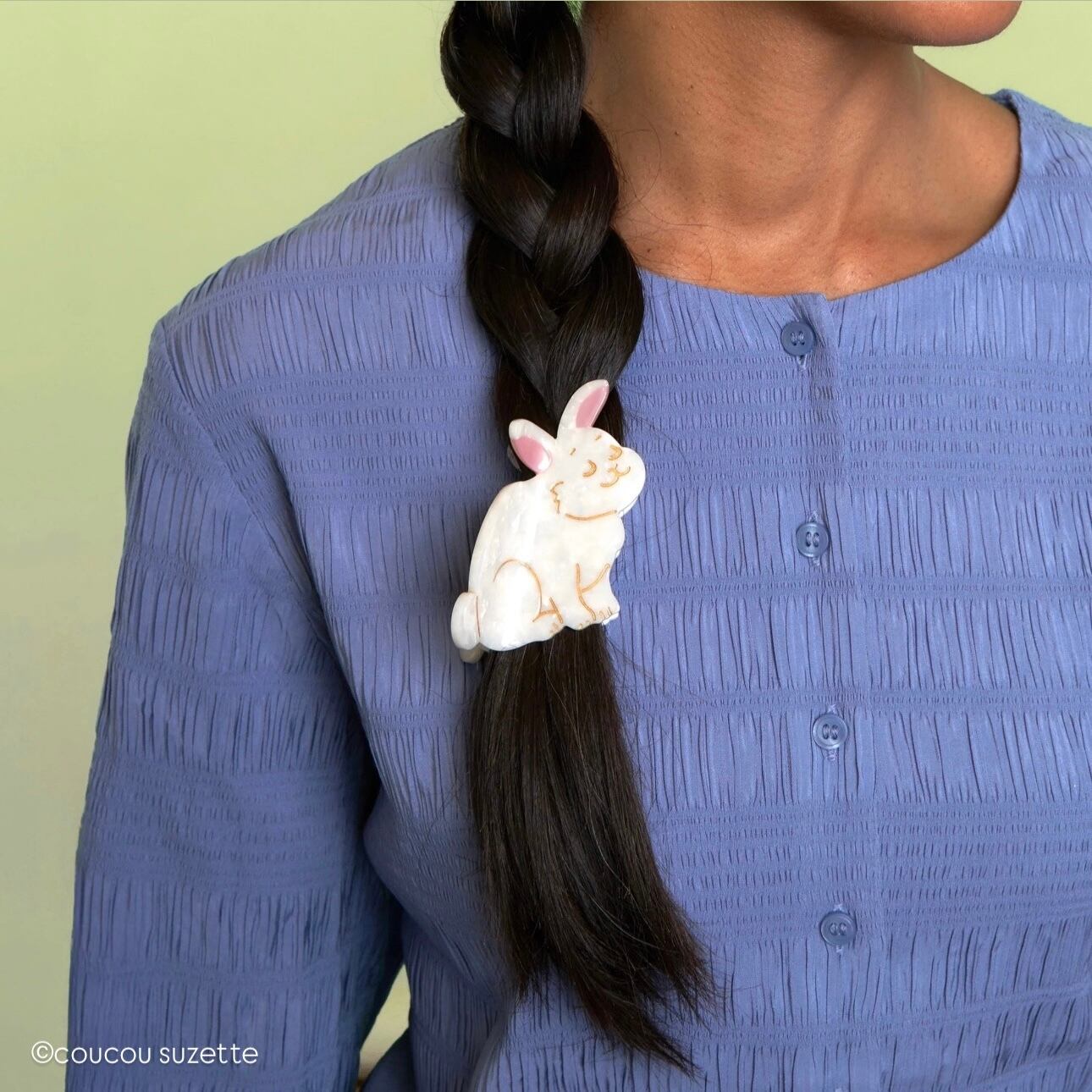 Need a quick fix for your hair? Just pop in this adorable white bunny hair claw clip! With its pink ears and plump little shape, this mischievous rabbit hair accessory is impossible to resist — you’ll want to take it everywhere you go. Perfect for playful styles and animal lovers alike, it adds a touch of whimsy to any look.