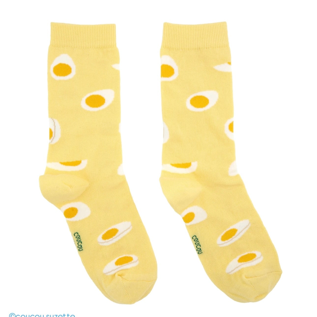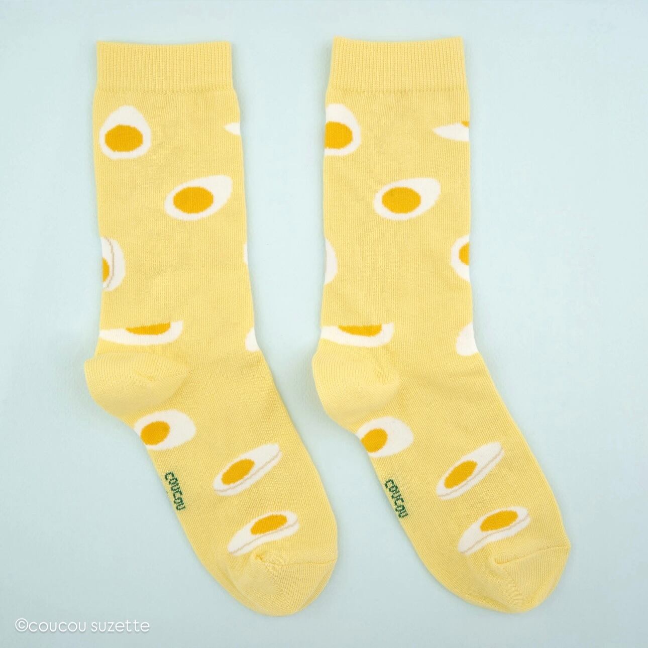 Add a little sunshine to your step with these pastel yellow socks, featuring a playful hard-boiled egg pattern! Perfectly cooked and ready to slip into your sneakers, they’ll follow you to all your picnics and countryside getaways. A unisex accessory that belongs in every sock drawer.