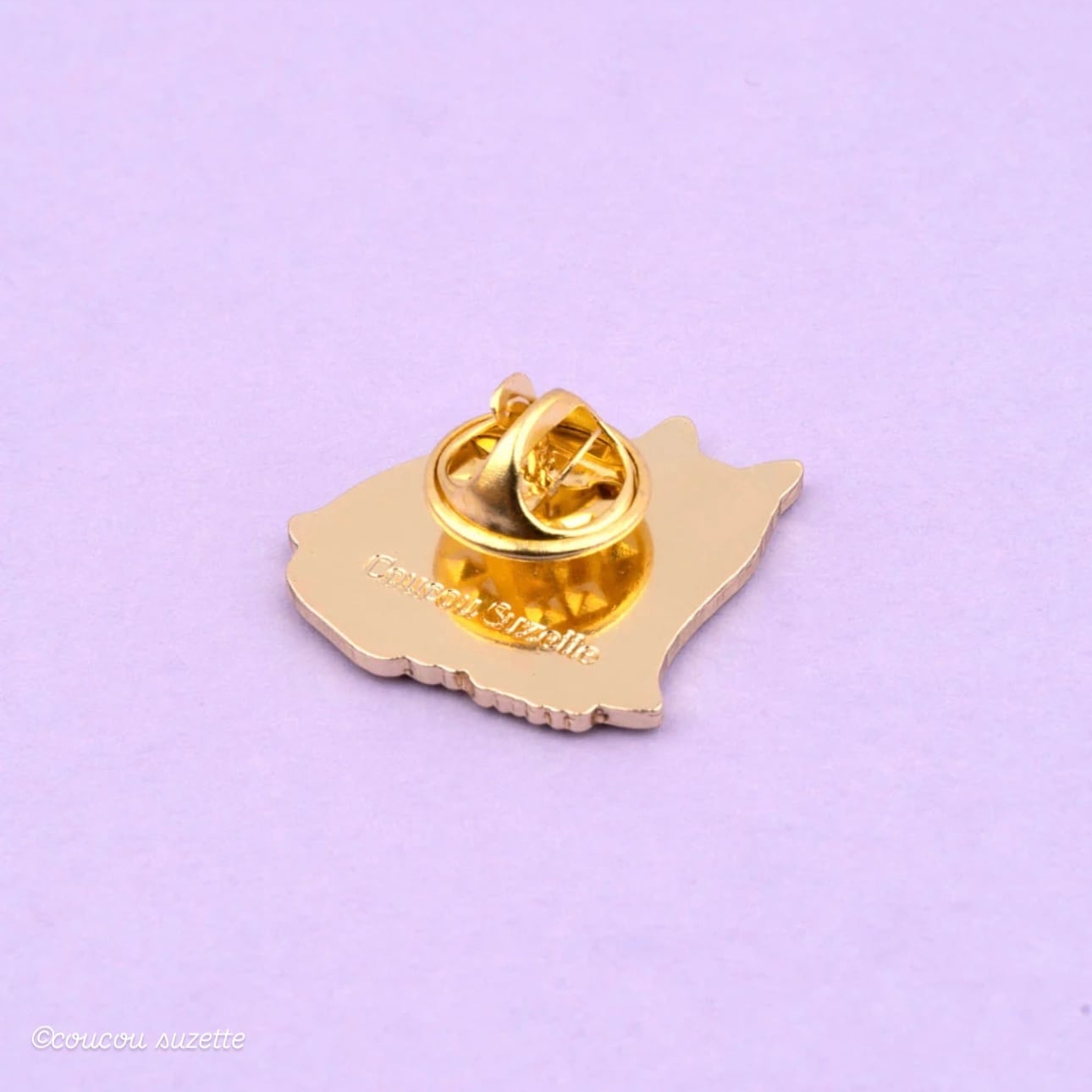A cute little pin shaped as a cat in its best ghost costume. The detail we love: the white sheet glowing in the dark. A super creative accessory that will make everyone jealous on Halloween.