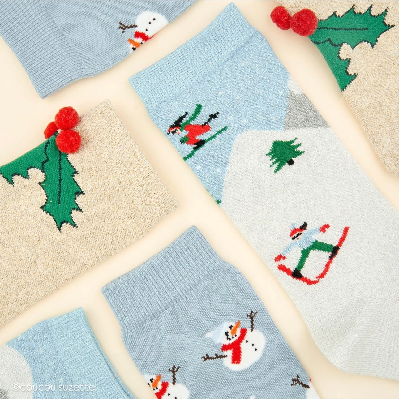 We love these sky blue socks with a snowman pattern that seem to welcome us with open arms. They seem to be looking forward to the end of year holidays as much as we are! Soft socks that ensure comfort and originality all winter long.