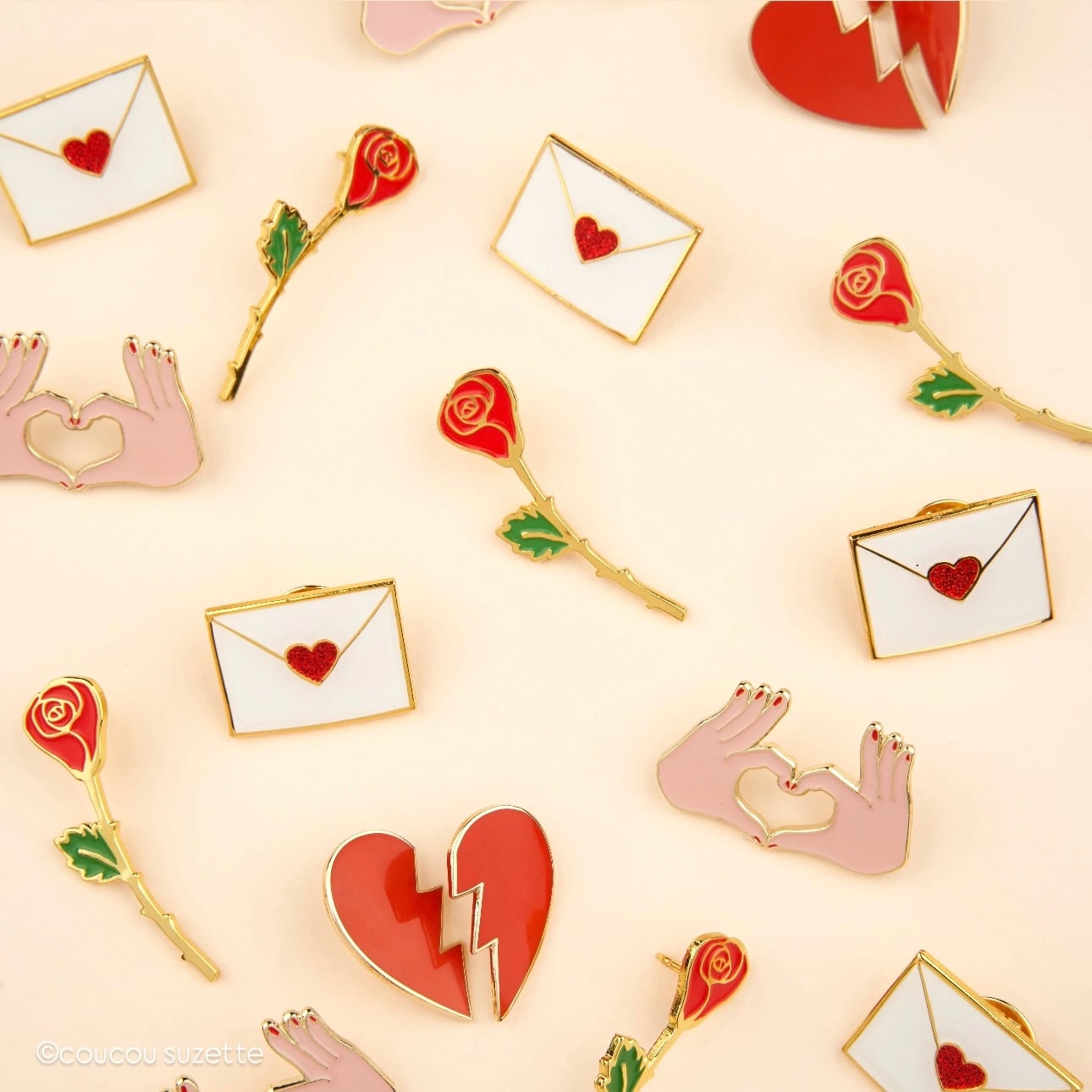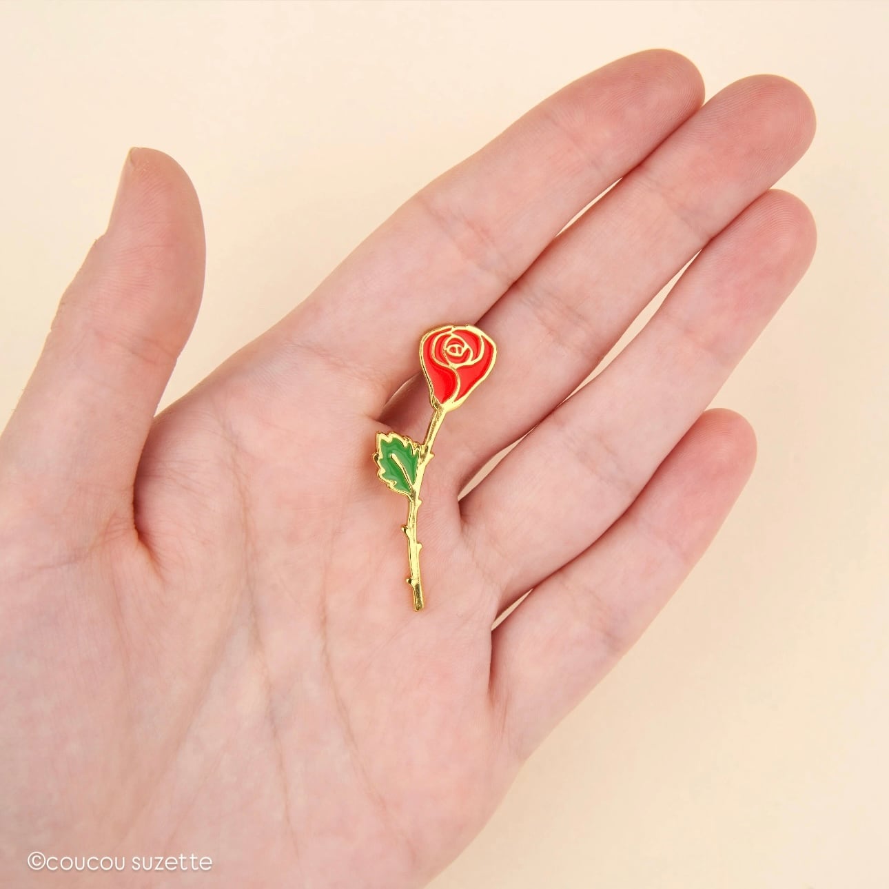 Here is our friend the rose in the form of the most elegant pin's, all in golden details and bright colors. We clip this little flower on our jackets or we offer it to our crush to discreetly declare our flame.