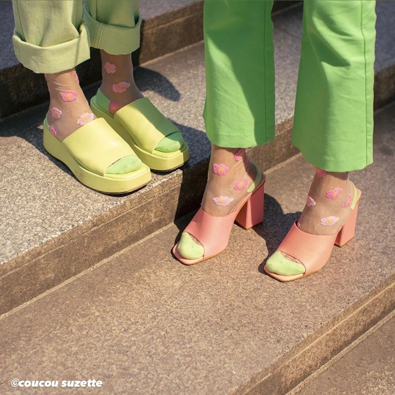 華やかな花柄と、ソックスの縁に施された