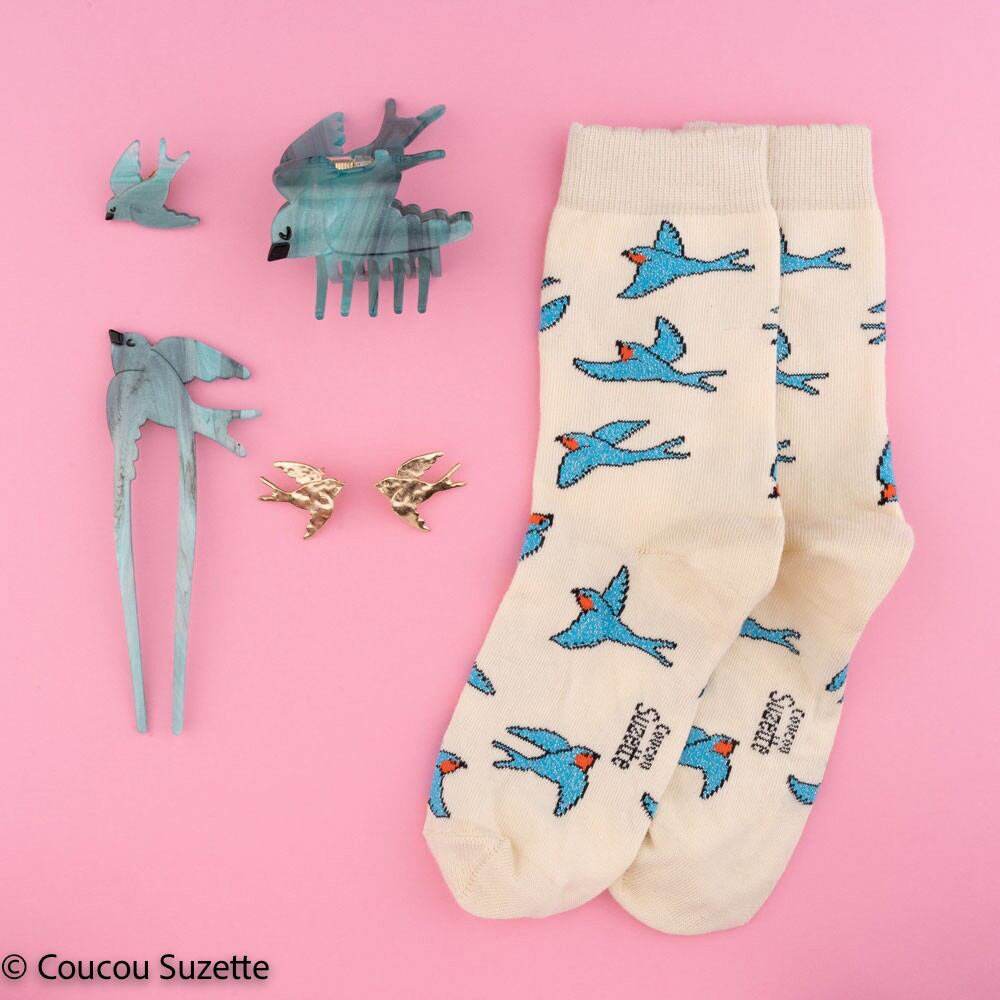 Created in 2013, Coucou Suzette quickly stood out with its original and accessible creations, soft prices for quality accessories, comfortable cotton socks, shining pins that’ll brighten up your outfit in the blink of an eye.