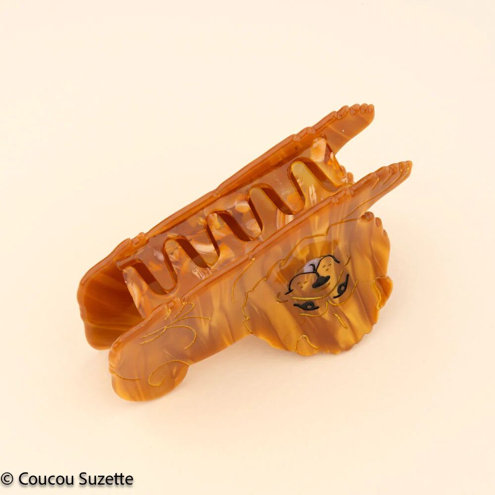 Impossible not to melt in front of a Chow-chow when you cross one. We are a fan of this half-bear half-lion dog with a crazy mane. This golden reflection hair clip is essential in every hairstyle, and just like this big dog, it does not go unnoticed!