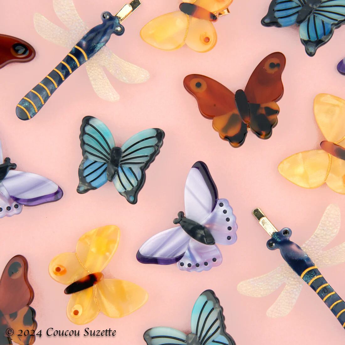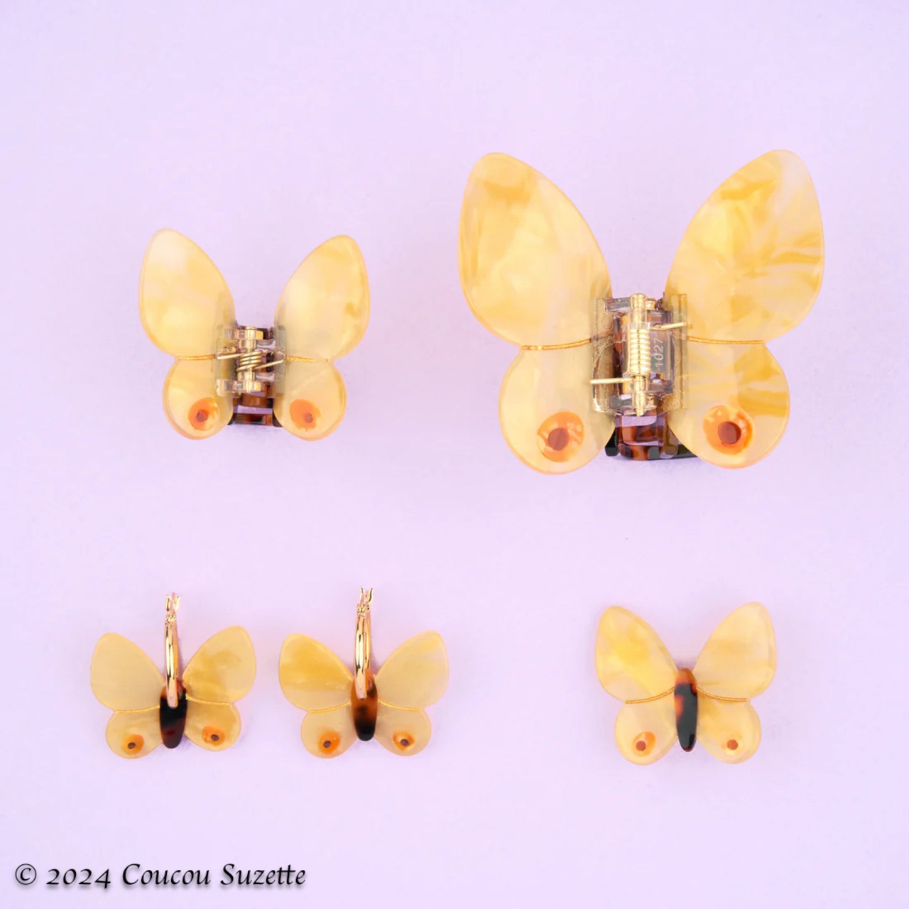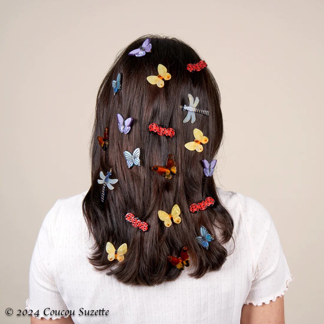 A little yellow butterfly ready to live its best life in our hair! We love its textured wings, which mimic the thousand reflections of its real-life pals, and its hypnotic symmetrical patterns. The perfect adding to any spring hairstyle.
