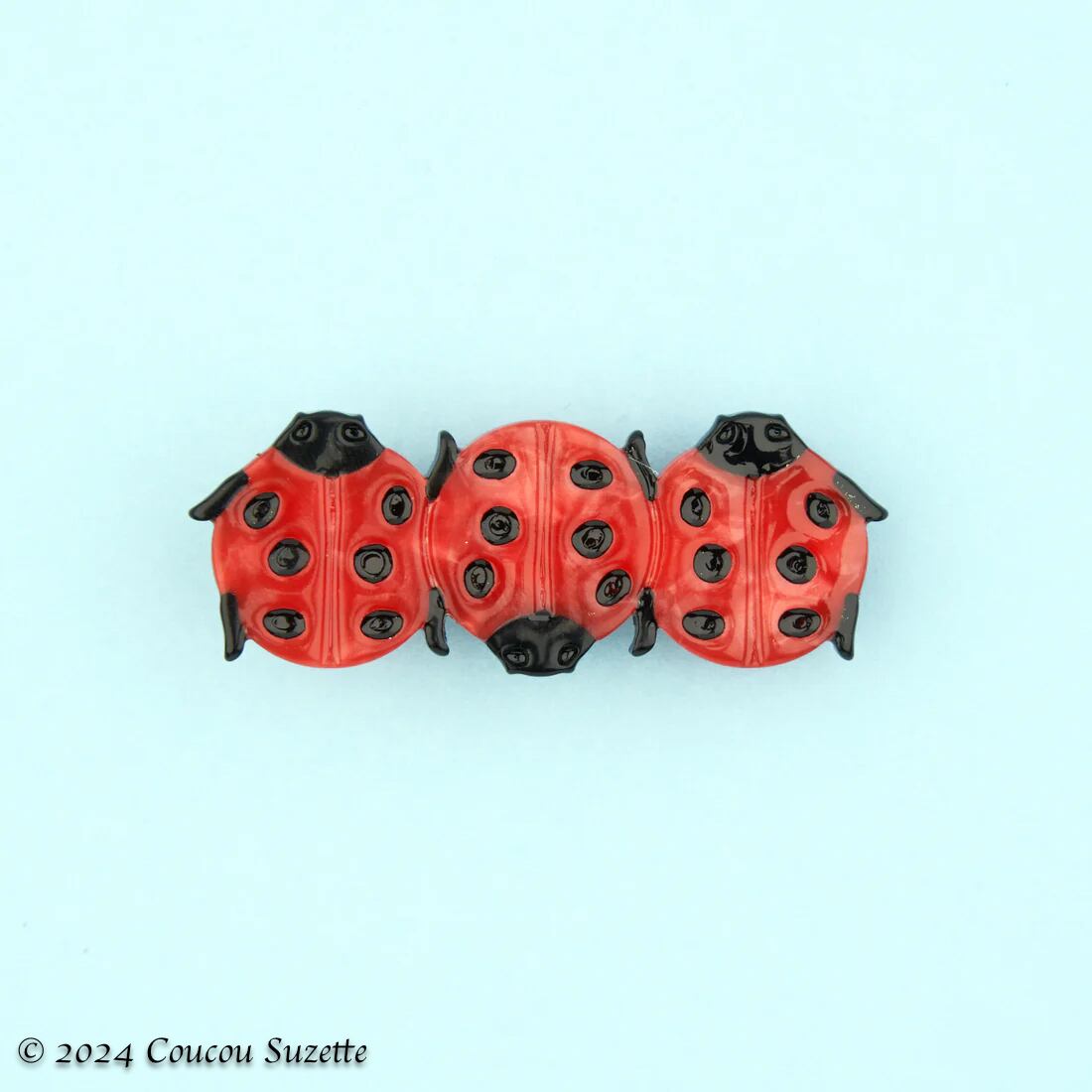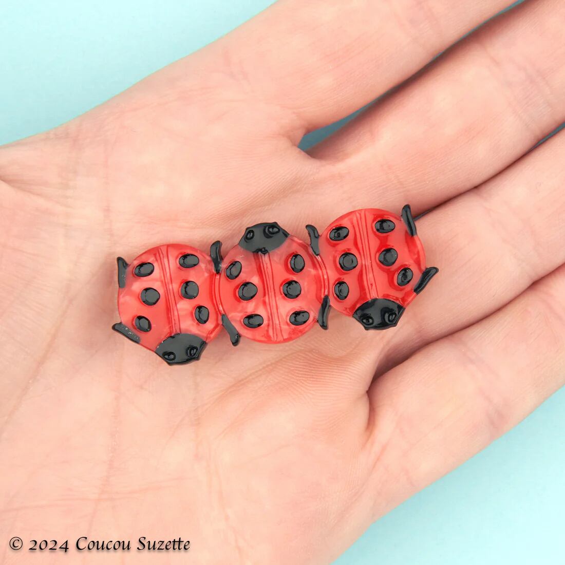Three little lucky ladybugs ready to clip onto our locks for deliciously country hairstyles. An original hair clip that brings back great memories of summer.