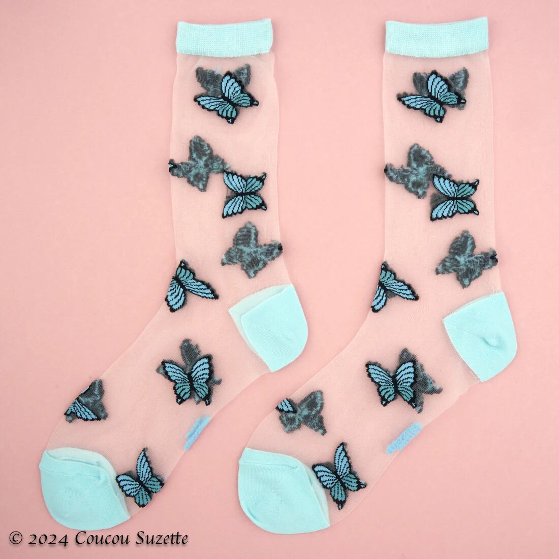 BLUE BUTTERFLY SHEER SOCKS