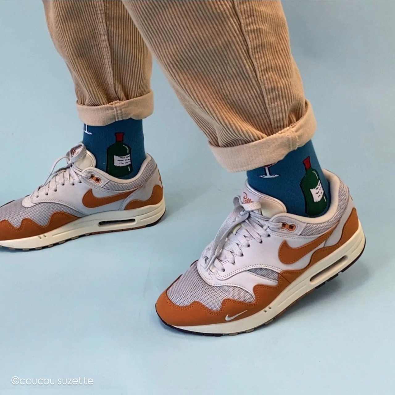 Socks with the effigy of our national pride: the bottle of red! Often copied, never equaled. With a good baguette and a piece of camembert, the shot is complete but absolutely validated!